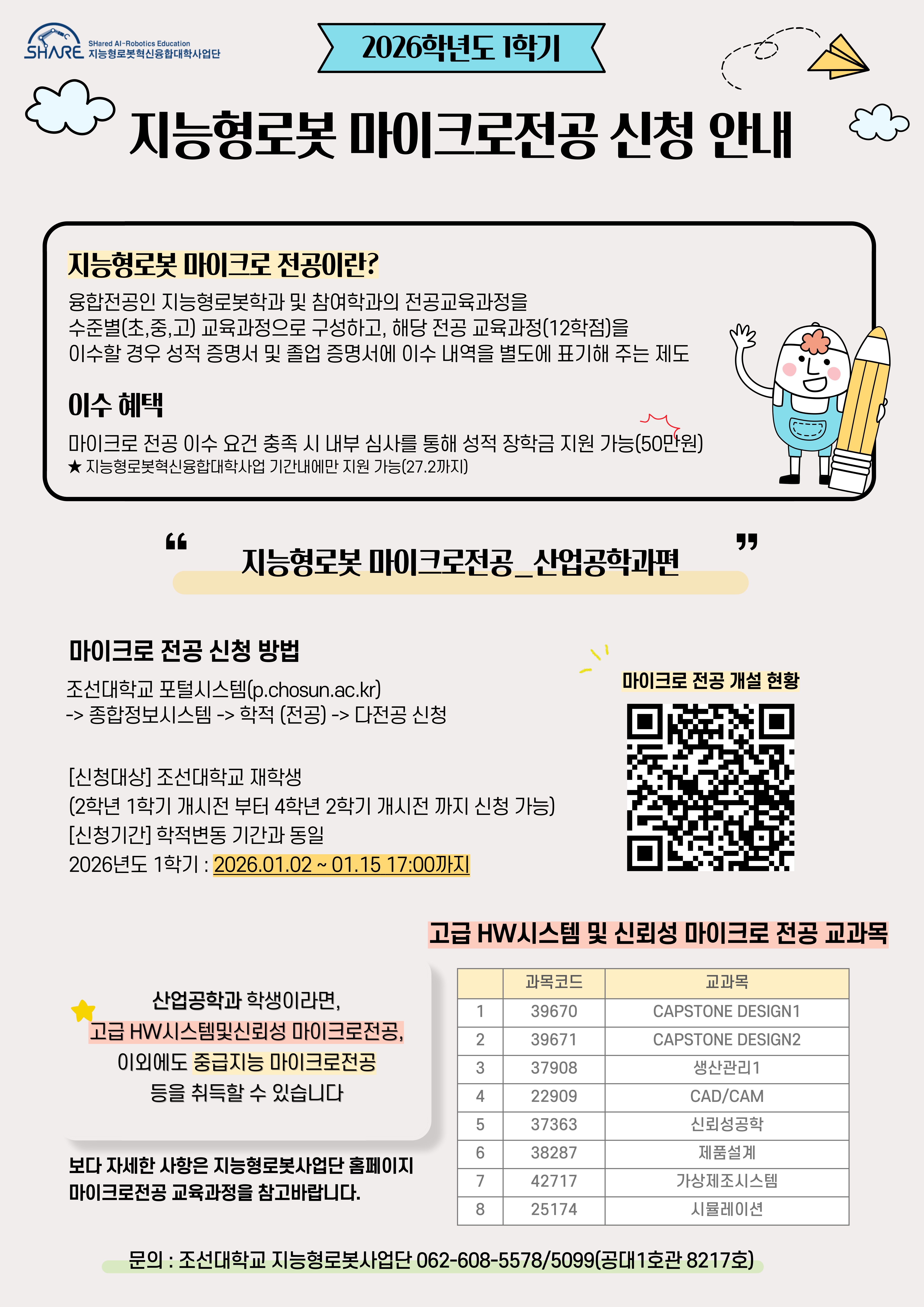 [정보통신공학전공편] 지능형로봇 마이크로전공 신청 안내 (신청기간: 1.2~1.15까지)