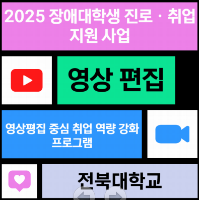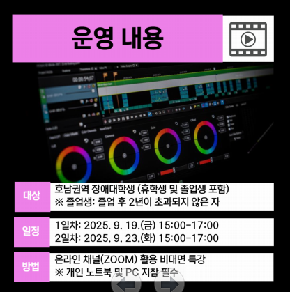 2025년 장애학생 권역별 선도대학 운영사업(진로·취업 지원) 영상편집 중심 취업 역량 강화 프로그램 안내문