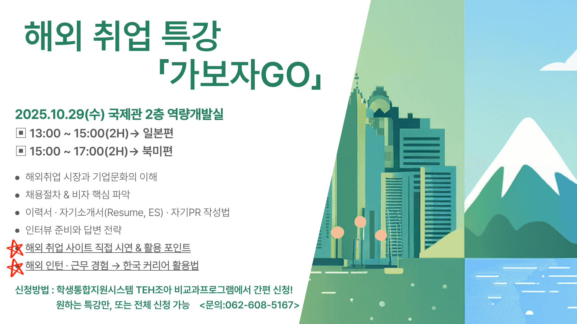 【대학일자리플러스센터】2025 해외취업특강 「해외취업 가보자GO」