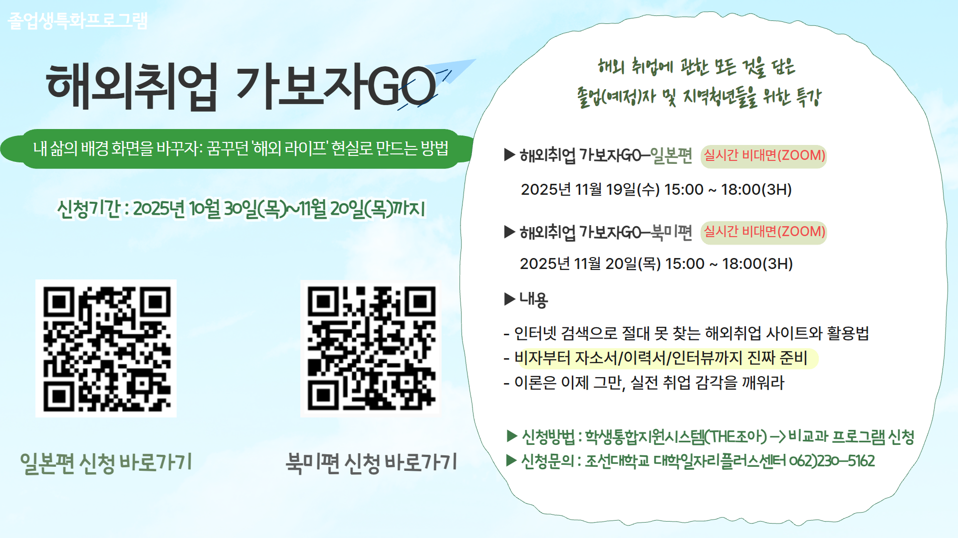 【대학일자리플러스센터】2025 해외취업 특강 「해외취업 가보자GO」