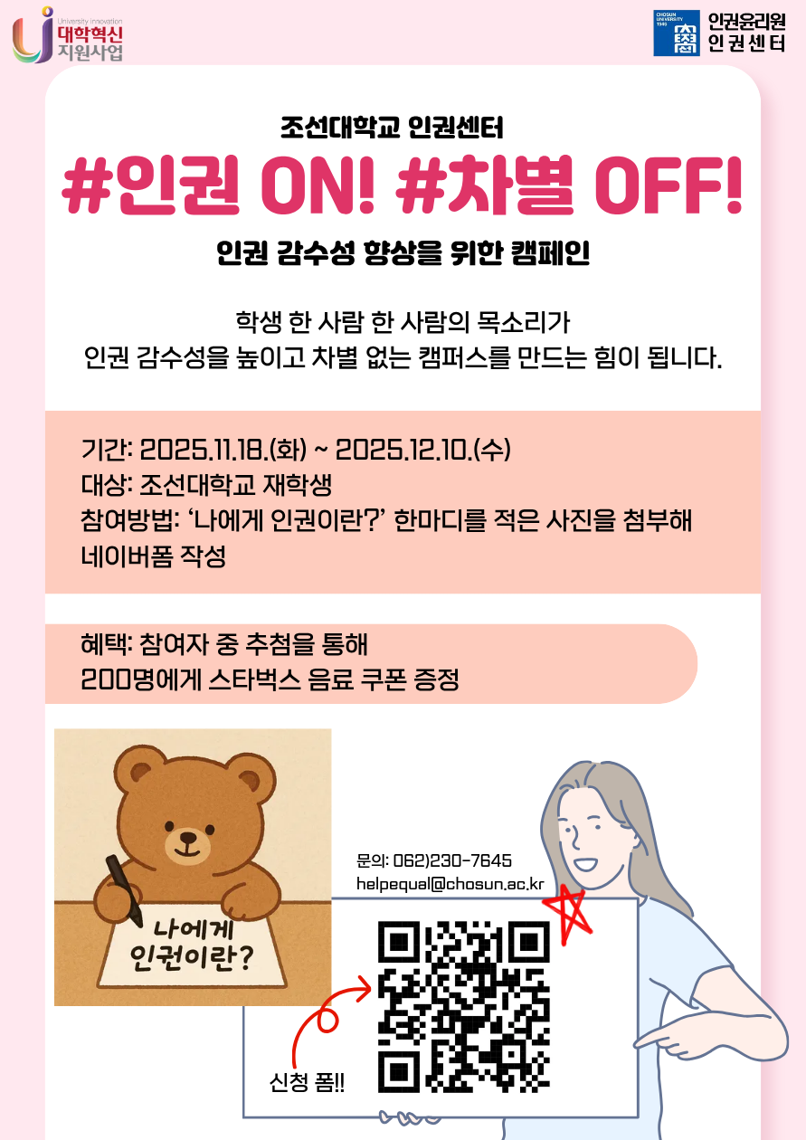 [인권센터] #인권ON! #차별OFF!, 인권 감수성 향상을 위한 캠페인 안내