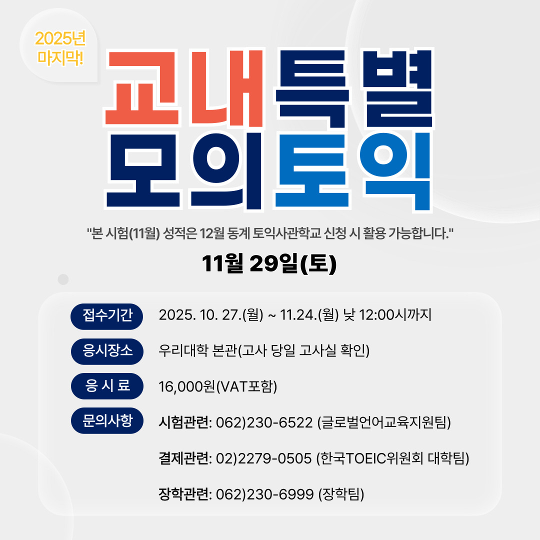 본교 특별 TOEIC (교내토익) 시험 실시 안내