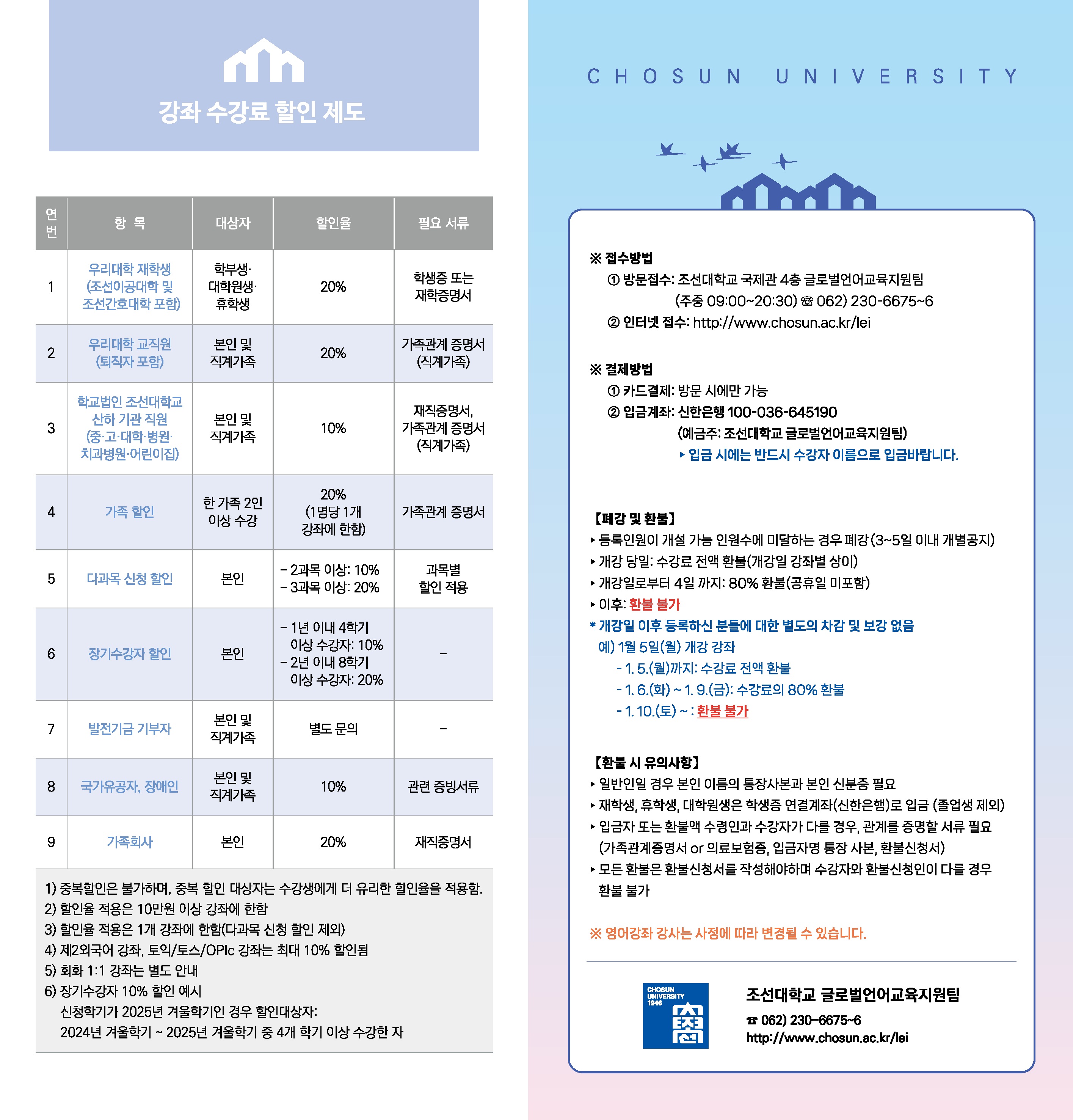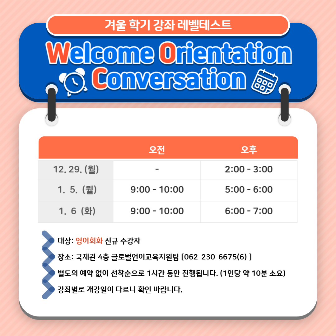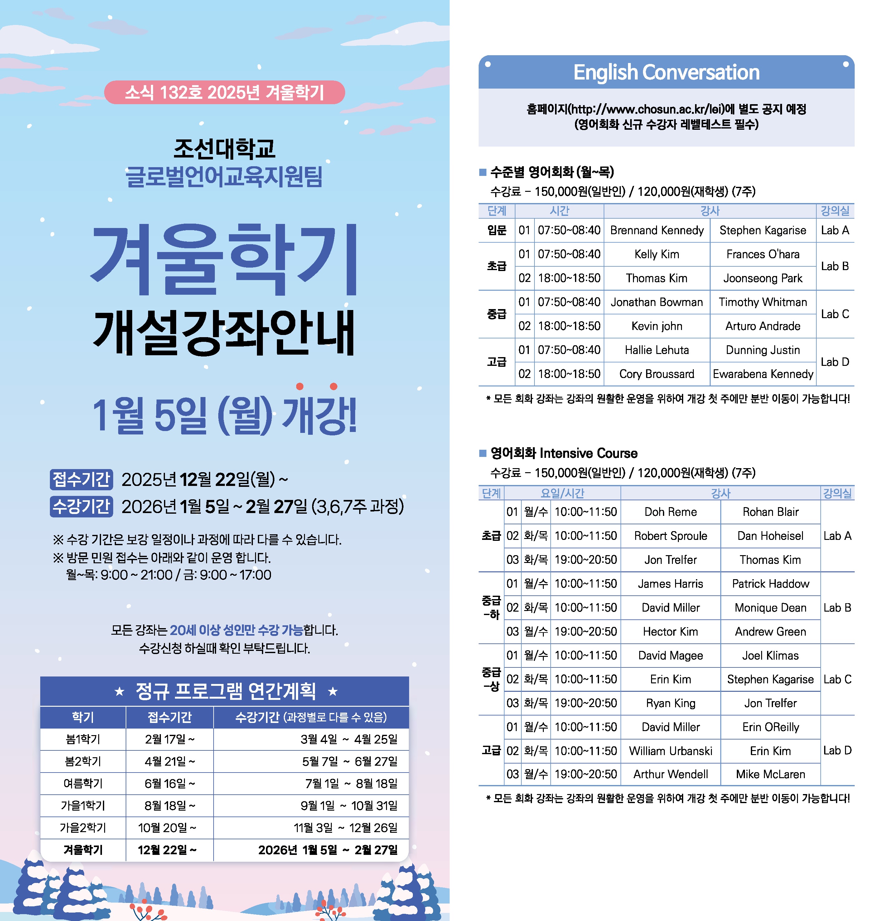 25학년도 겨울학기 외국어 강좌 개강(12월 22일 선착순 접수+Level Test 일정 안내)