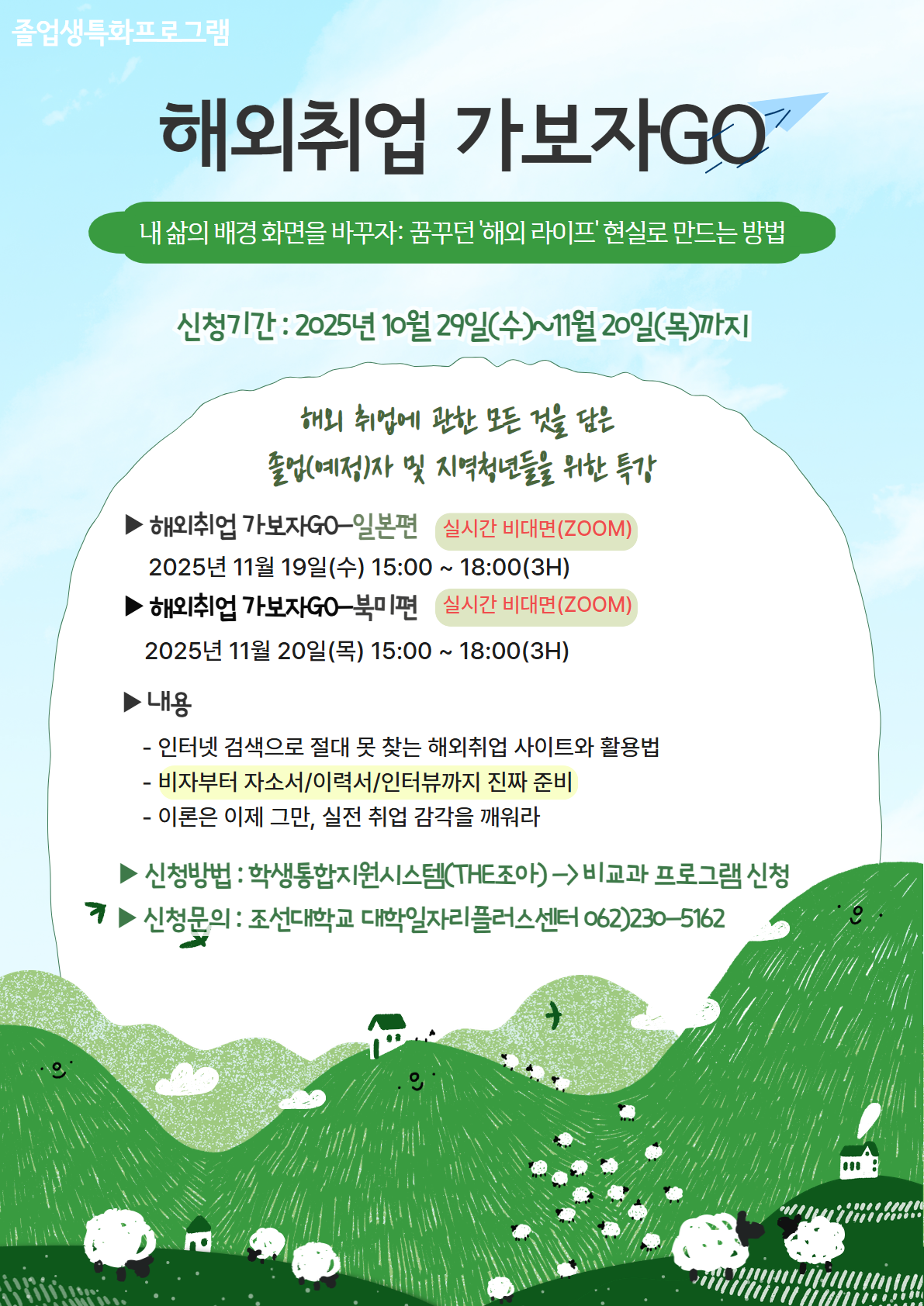 fnctId=bbs,fnctNo=96 글번호 227376 [대학일자리플러스센터] 2025 해외취업 특강 「해외취업 가보자GO」 작성일 2025.11.04 수정일 2025.11.04 작성자 생명과학과관리자 조회수 95 첨부파일 첨부파일이(가) 없습니다.