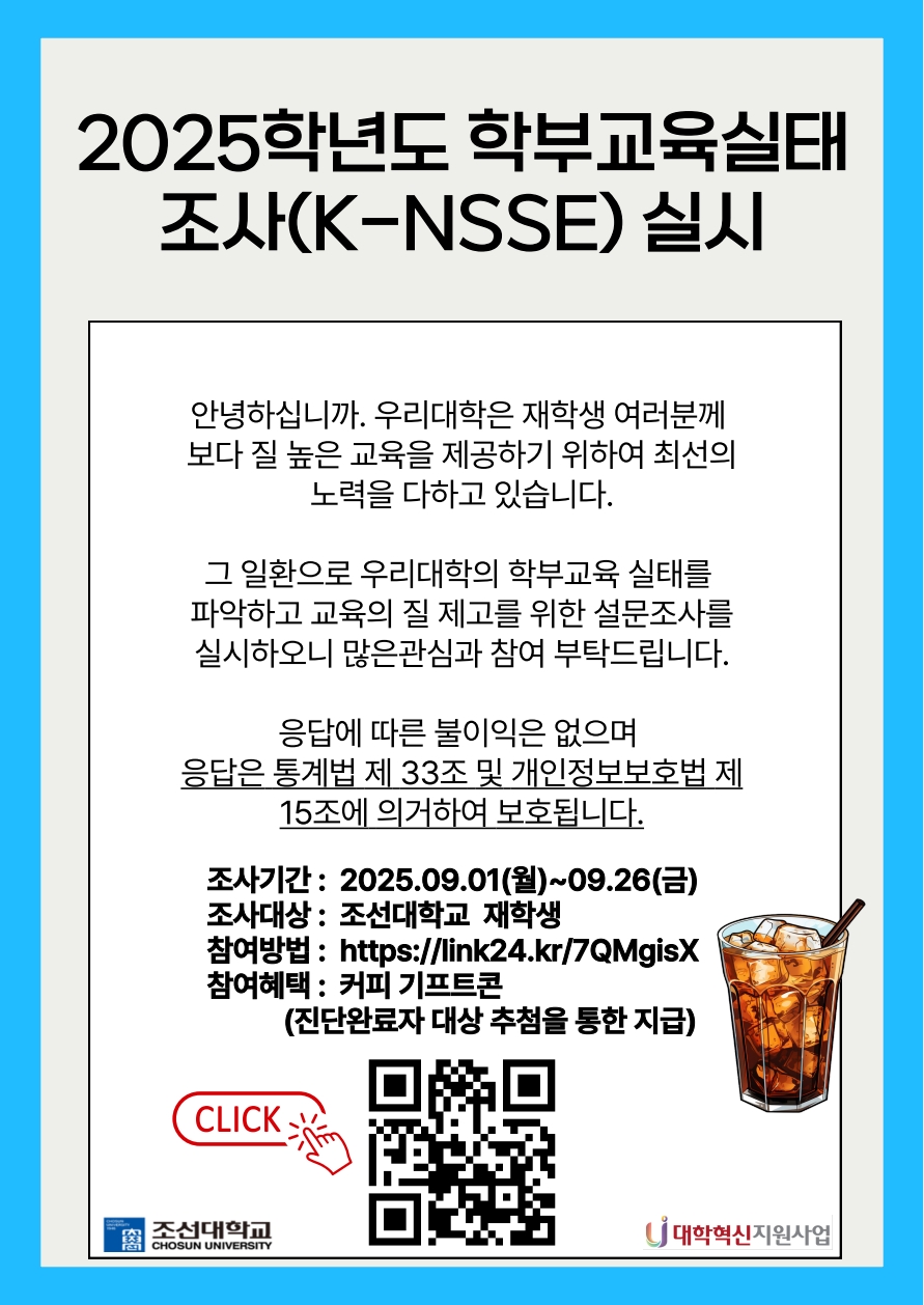 2025학년도 학부교육실태조사(K-NSSE) 실시와 관련된 안내를 드립니다.