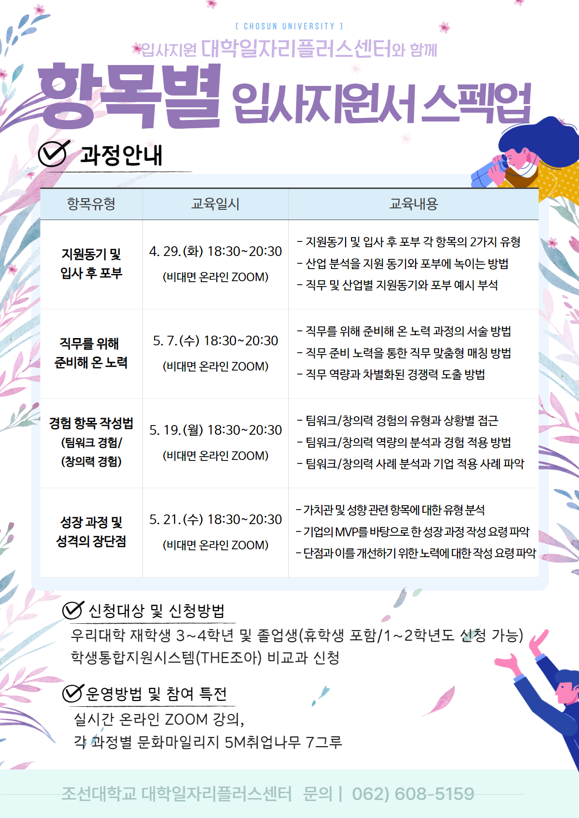 fnctId=bbs,fnctNo=35 글번호 221432 【대학일자리플러스센터】「항목별 입사지원서 특강」 작성일 2025.04.09 수정일 2025.04.09 작성자 engineering 조회수 422 첨부파일 첨부파일이(가) 없습니다. 다음글 [원스톱학생상담센터] 자유전공학부 학과 적응 프로그램 공과대학관리자 2025-04-10 13:46:39.0 이전글 【대학일자리플러스센터】 소셜미디어 홍보콘텐츠 제작 교육 공과대학관리자 2025-04-09 10:32:55.0