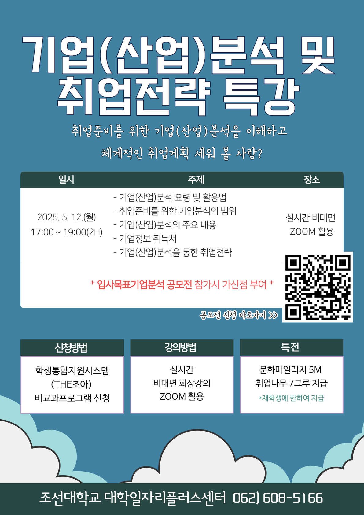 fnctId=bbs,fnctNo=35 글번호 221693 【대학일자리플러스센터】기업(산업)분석 및 취업전략 특강 작성일 2025.04.16 수정일 2025.04.16 작성자 engineering 조회수 460 첨부파일 첨부파일이(가) 없습니다. 다음글 【대학일자리플러스센터】2025 입사목표기업분석 공모전 공과대학관리자 2025-04-16 15:01:37.0 이전글 【대학일자리플러스센터】직군별 직무탐색분석과 취업준비전략 특강 공과대학관리자 2025-04-16 14:57:38.0